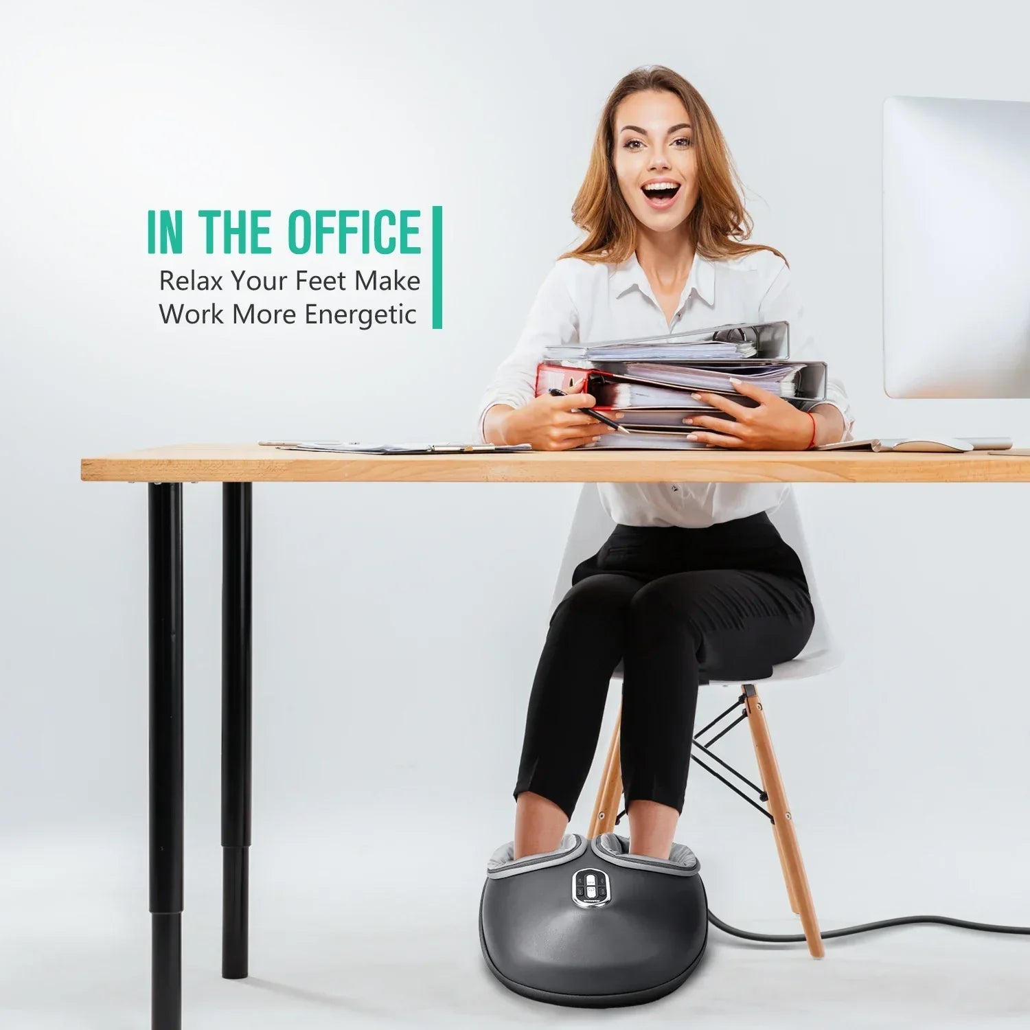 Whether you're on your feet all day or just need a moment of calm, this massager offers multiple settings to suit your needs. The combination of rolling massage nodes, warm heat therapy, and rhythmic compression promotes better circulation, reduces foot fatigue, and supports overall relaxation.